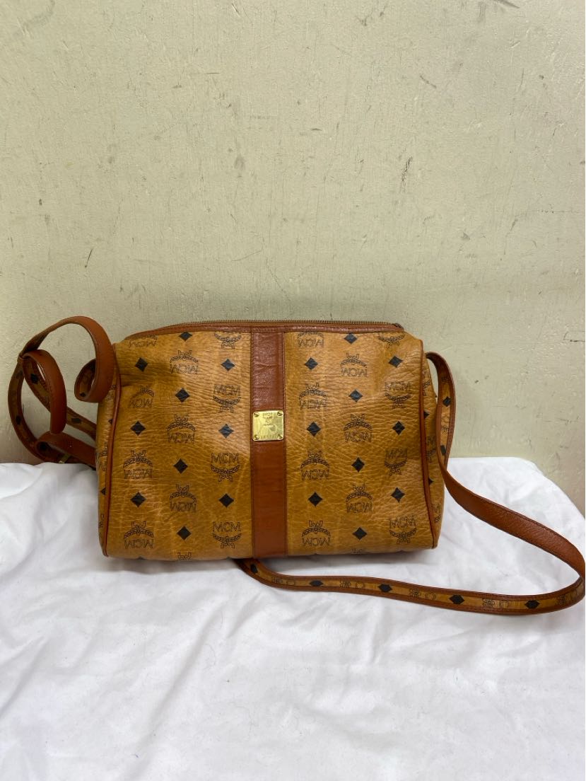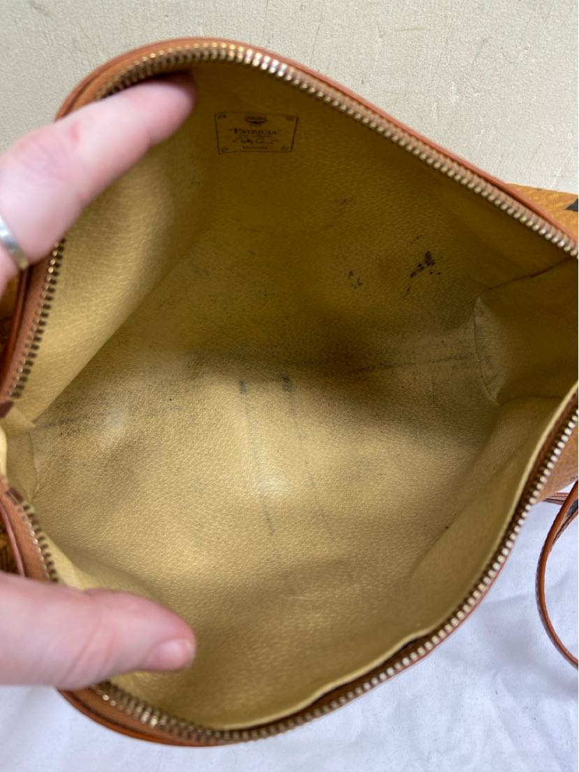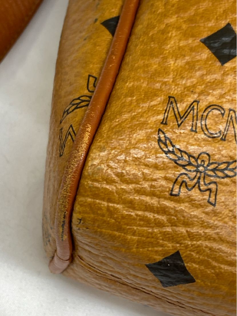 MCM Brown Leather Purse Bag AS IS - wear on corners & marks inside