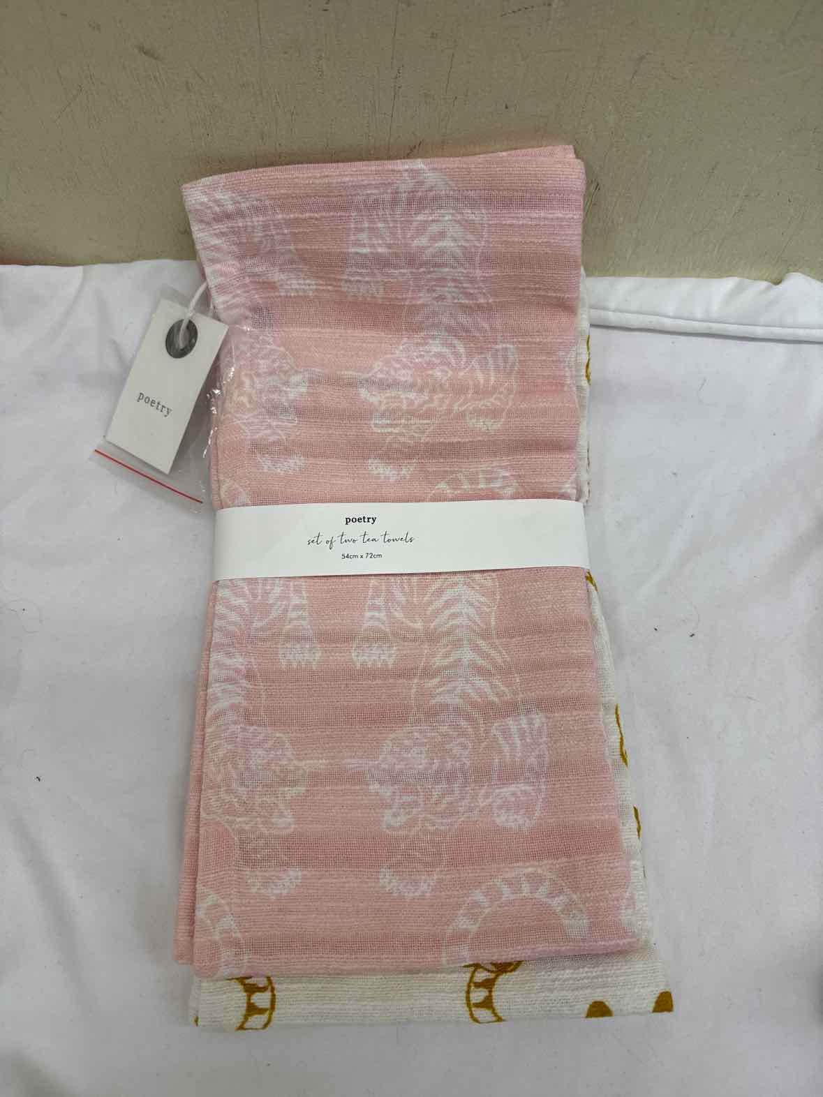 NWT 2PCS Poetry Tiger Jacquard Pink Tea Towels