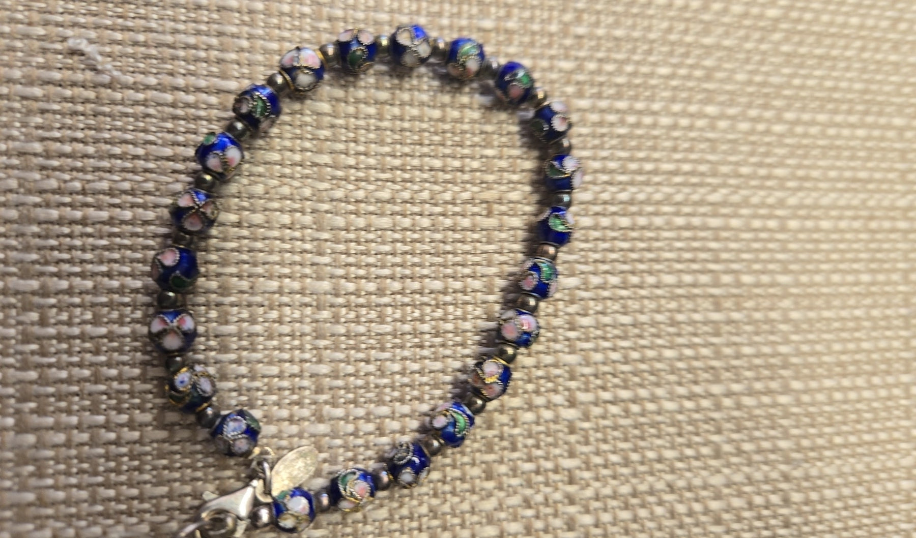 Cloisonne Blue Floral Beads .925 Sterling Silver Clasp Necklace & Bracelet Set