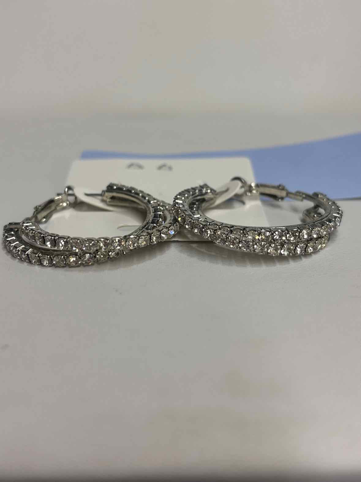 Silver Rhinestone Crystal Hoop Earrings