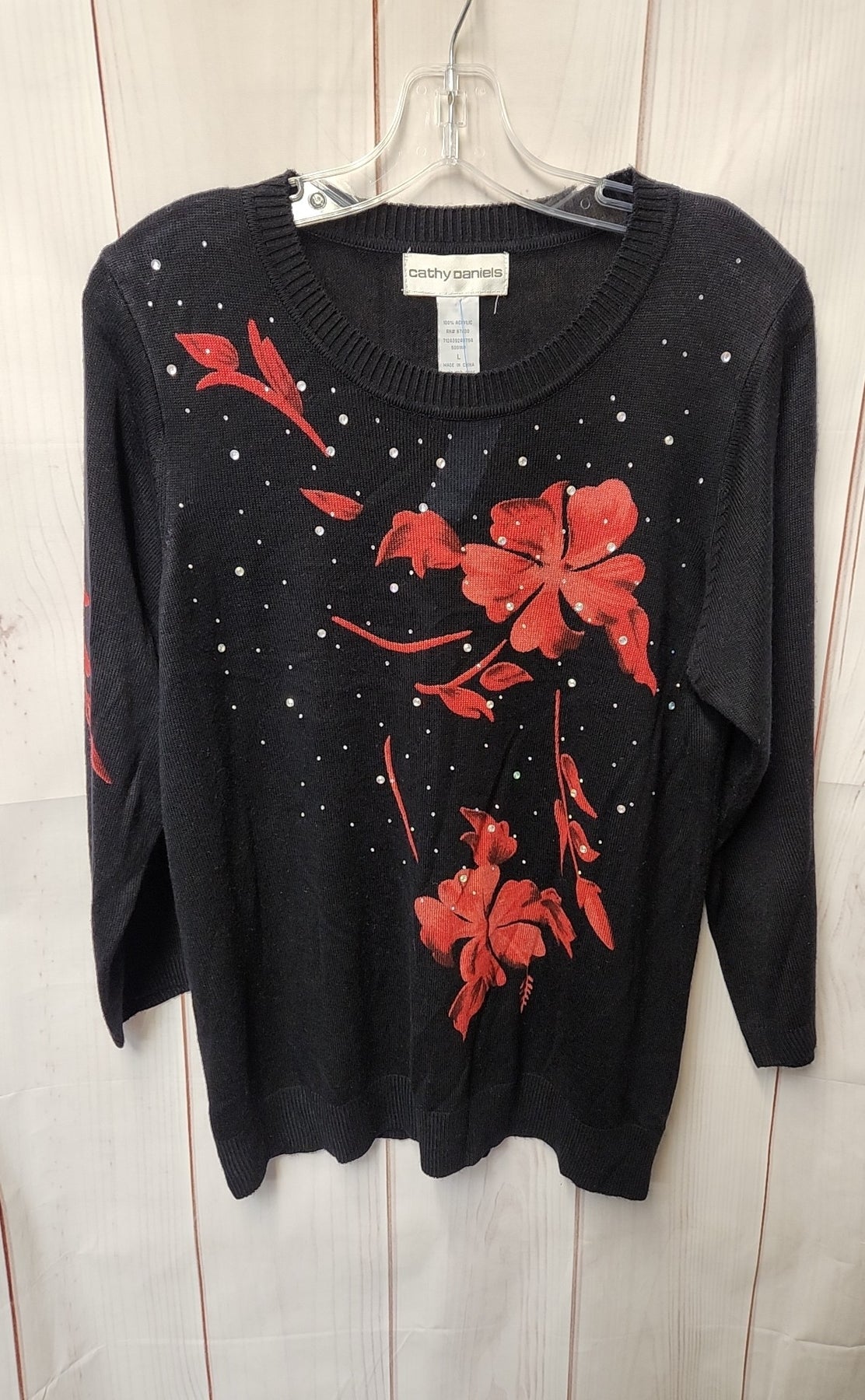 Cathy Daniels Women's Size L Black & Red Floral Sweater