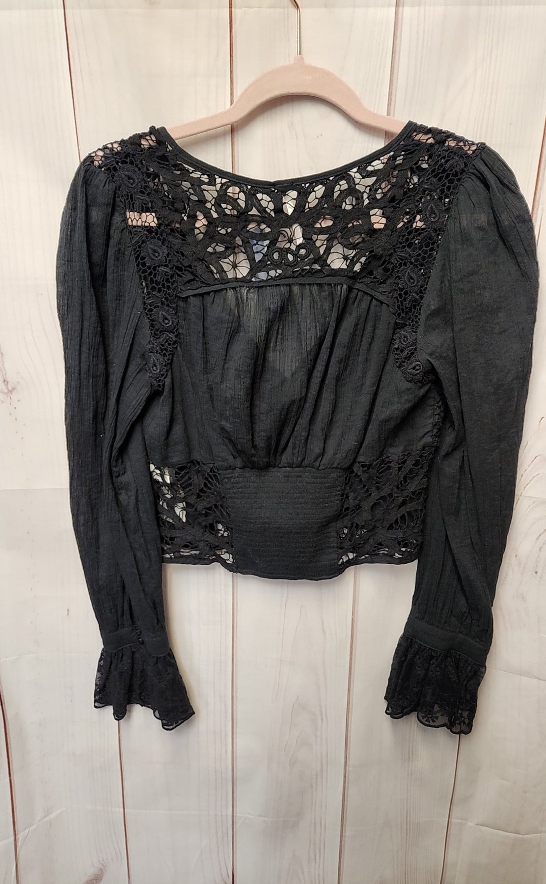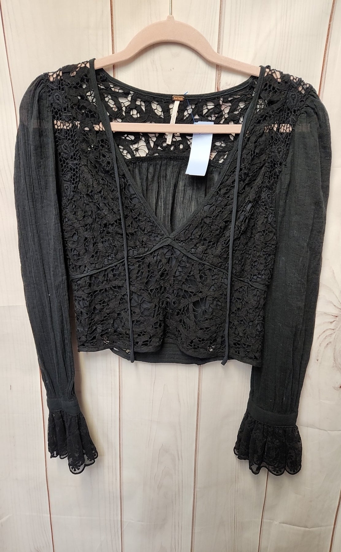 Free People Women's Size M Black Lace Long Sleeve Top