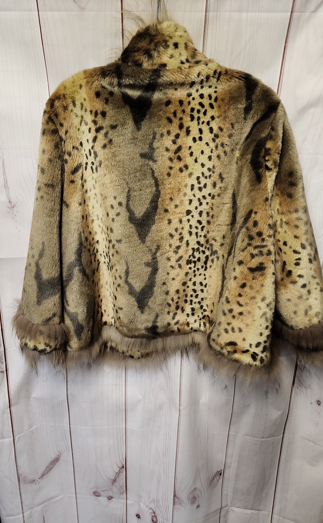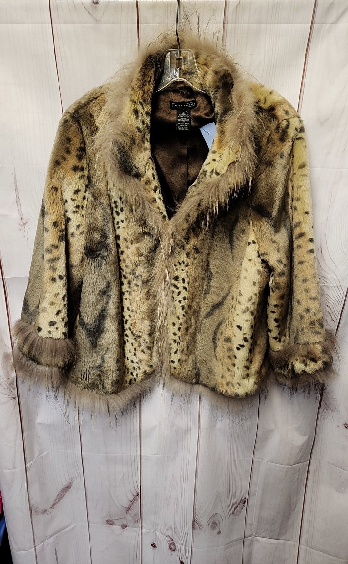 Lauren Hansen Women's Size L Brown Faux Fur Animal Print Cardigan