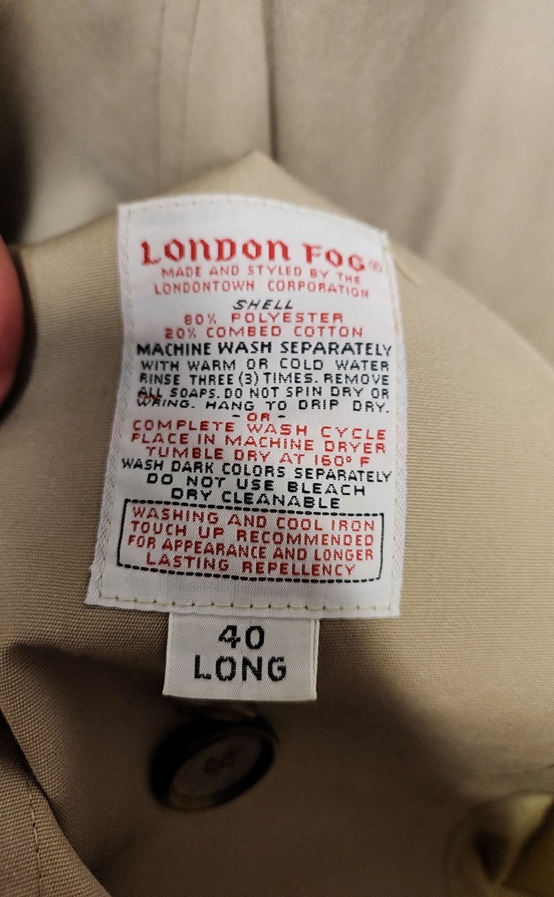 London Fog Men's Size 40 L Beige Coat