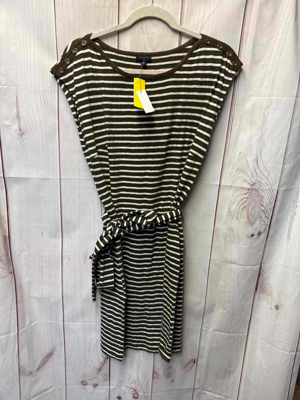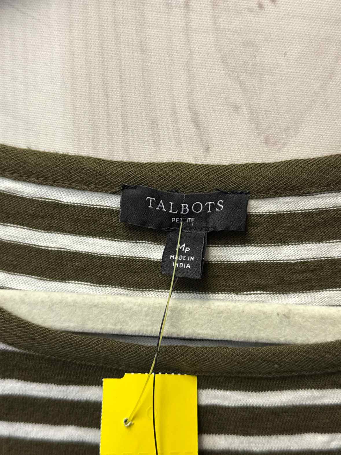 NWT Talbots Women's Size M Petite White & Olive Green Cotton Dress