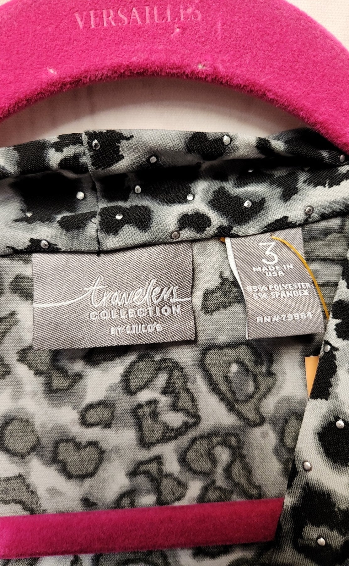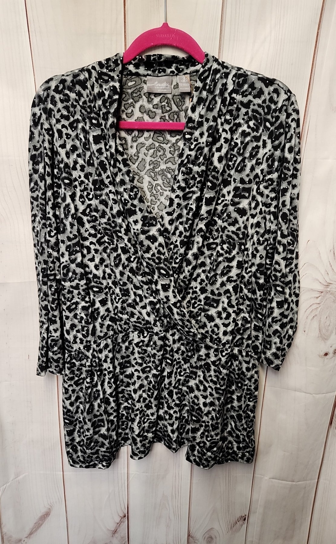 Chico's Travelers Women's Size 3 = US XL Gray Animal Print 3/4 Sleeve Top