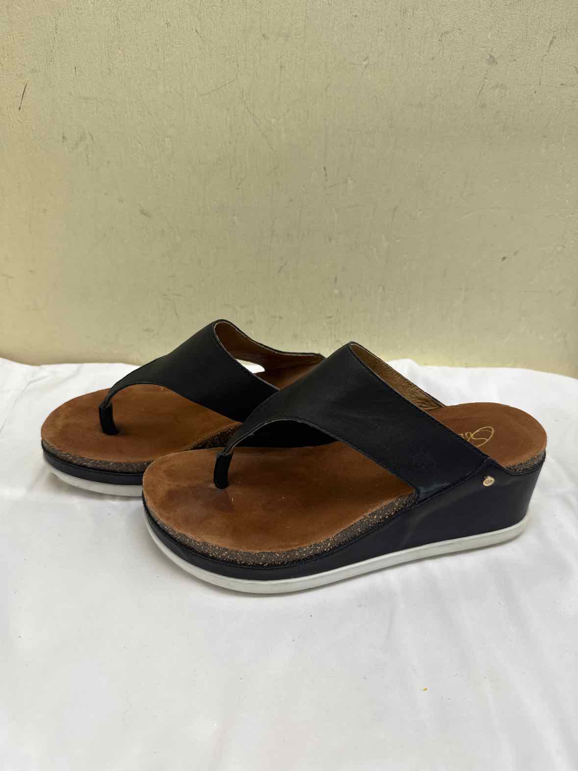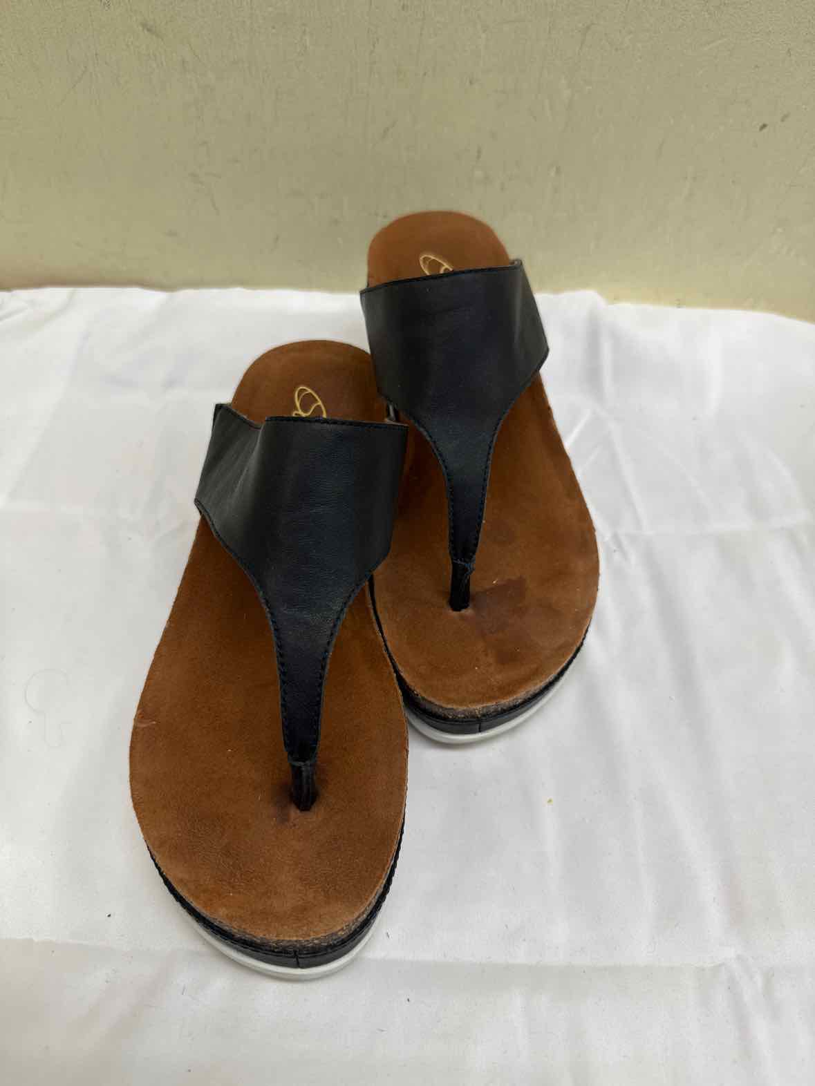 Sudini Women's Size 6 Black Leather Sandals Shoes