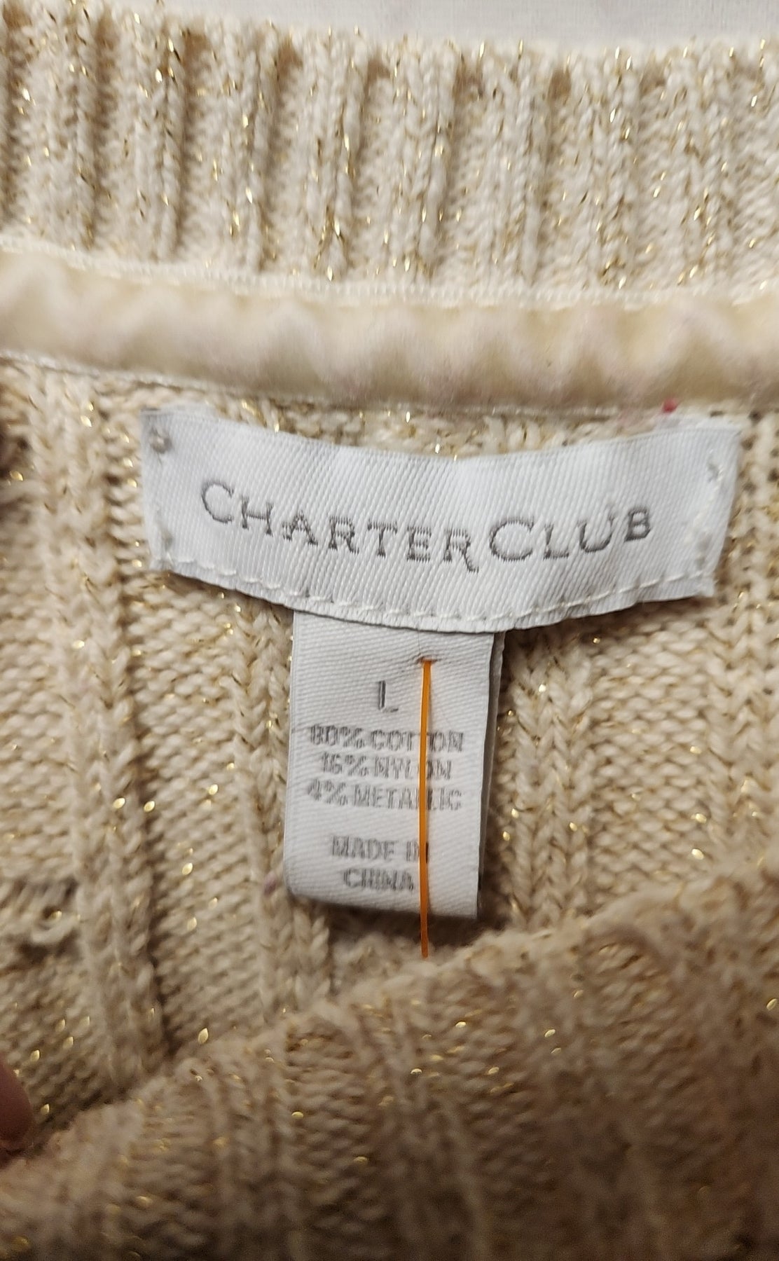 Charter Club Women's Size L Beige Metallic Sweater