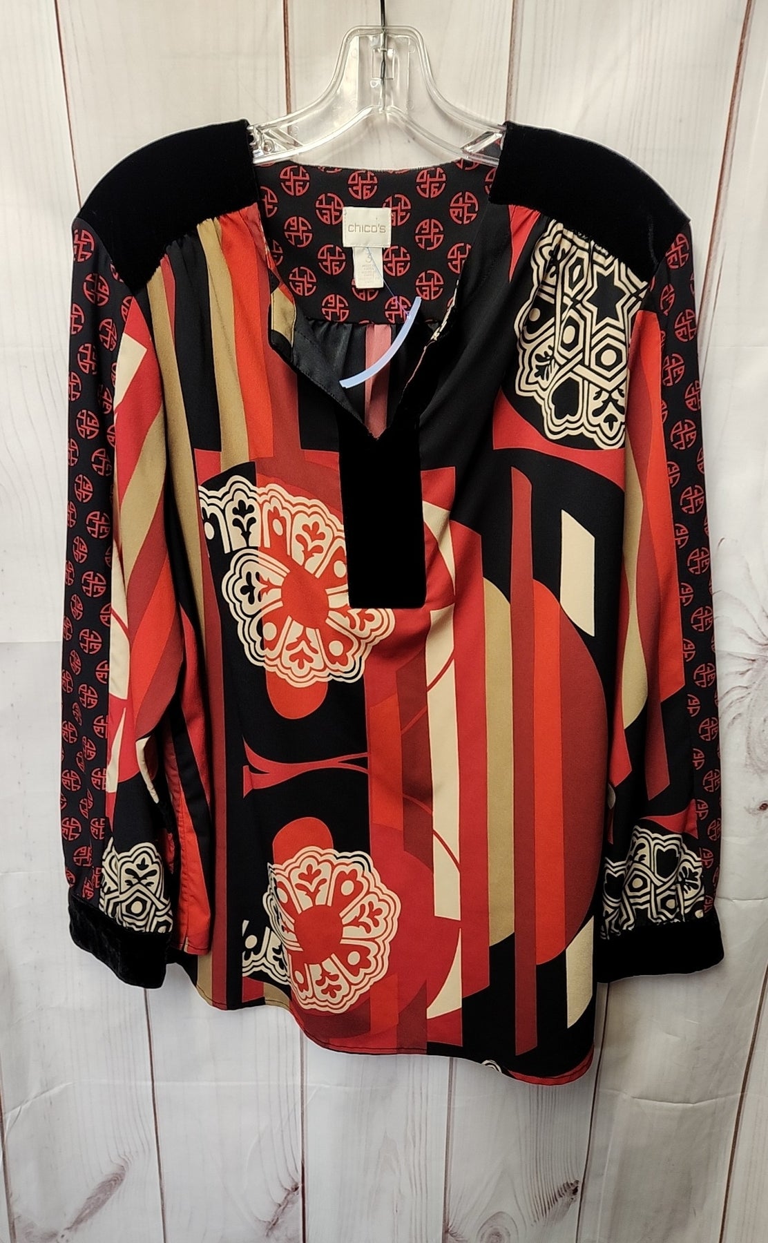 Chico's Women's Size 3 = US XL Red & Black Long Sleeve Top
