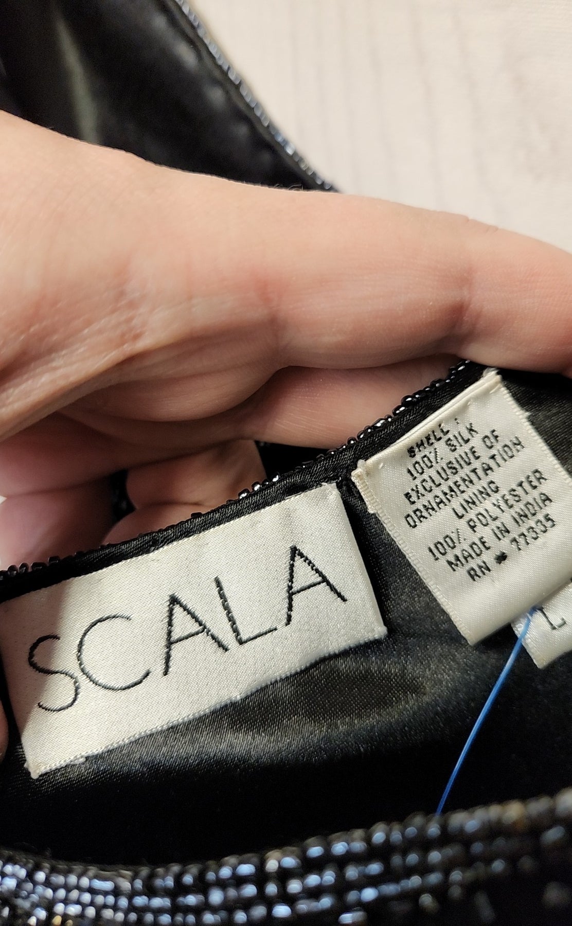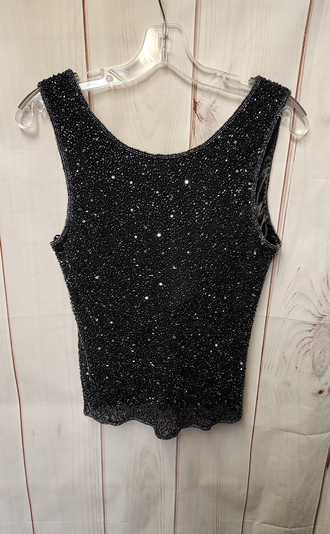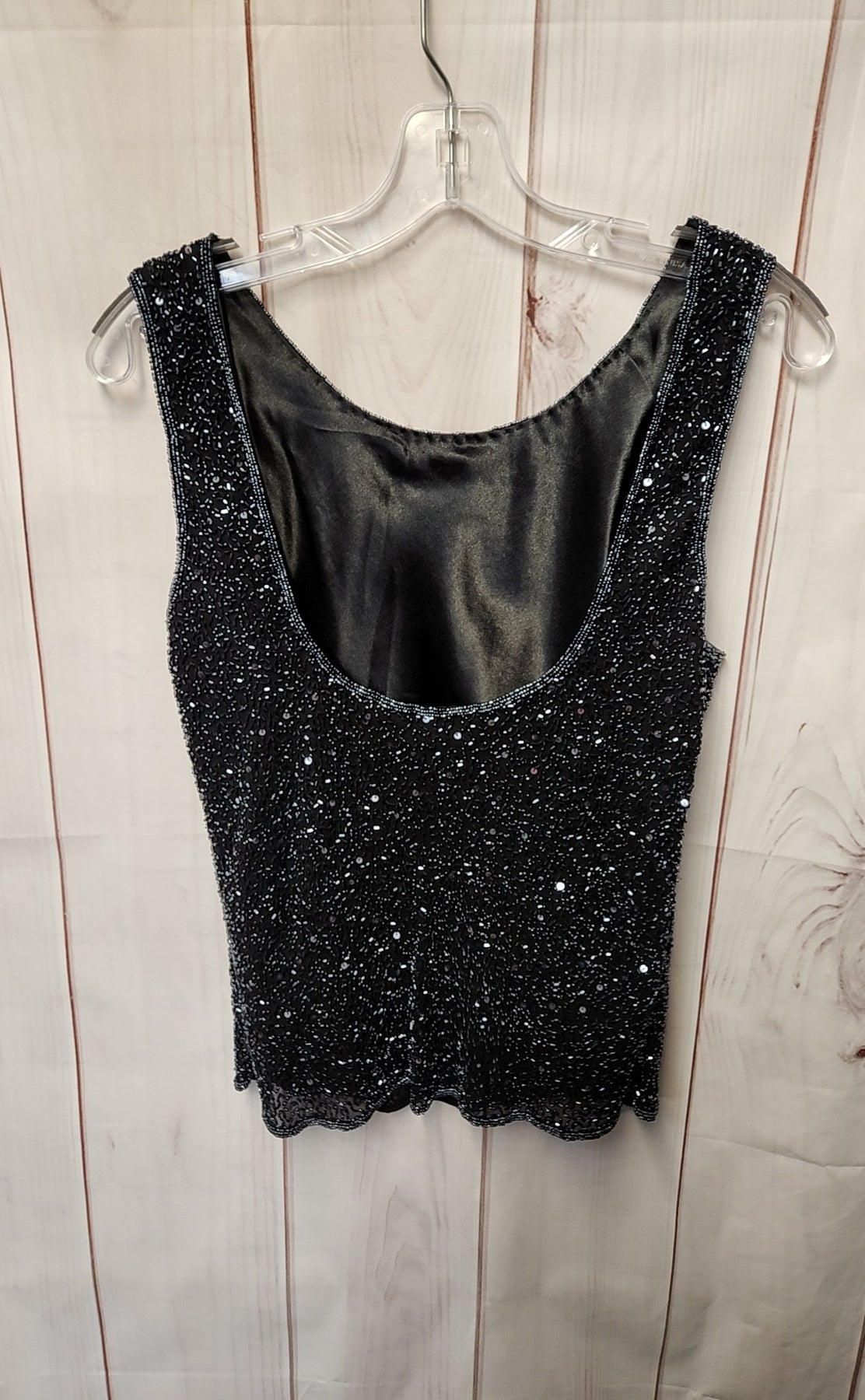 Scala Women's Size L Black Silk Beaded Sleeveless Top