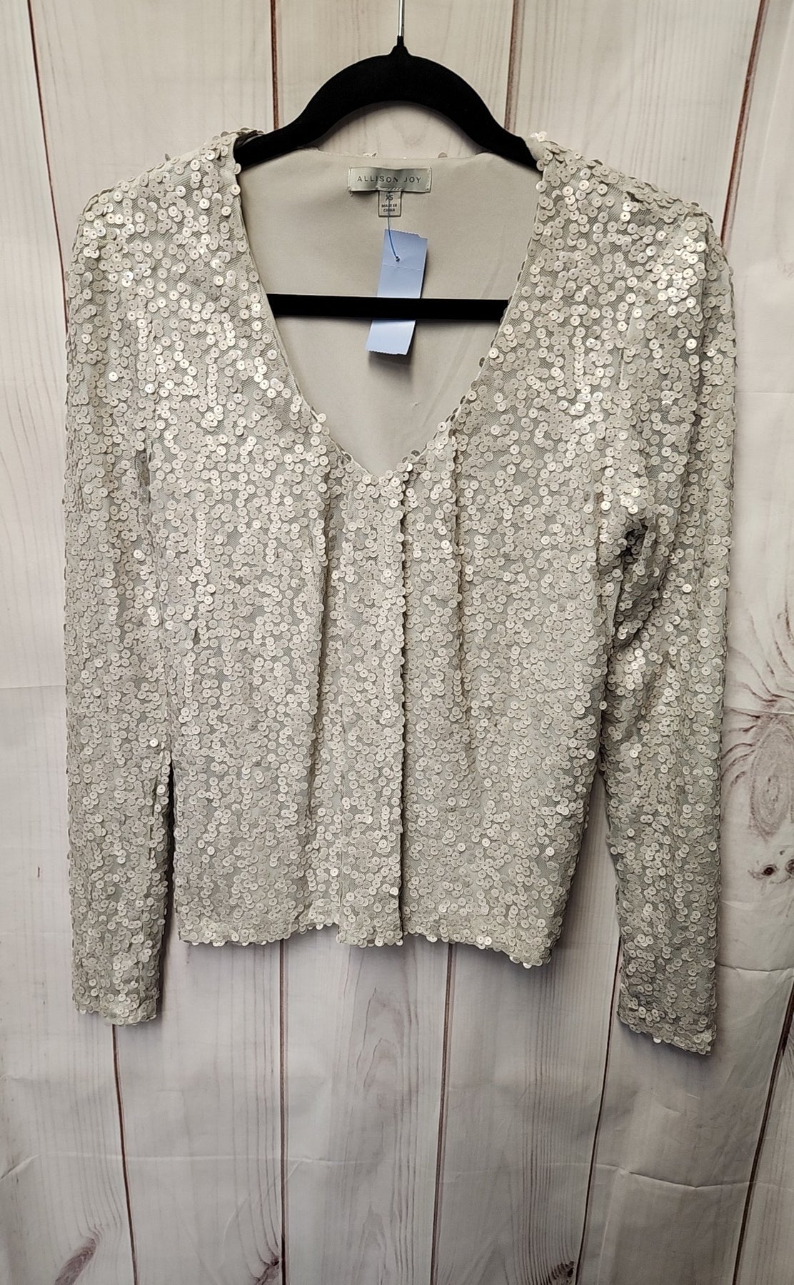 Allison Joy Women's Size XS Beige Sequined Long Sleeve Top